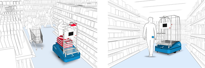 Pierre Legendre和Benjamin Loize在一個(gè)項(xiàng)目上工作了兩年,該項(xiàng)目旨在減少工作量和提高免下車服務(wù)的盈利能力。他們向公司管理層建議,為商店的員工提供一個(gè)真人大小的機(jī)器人,以協(xié)助他們完成特別繁重的任務(wù),如將重型產(chǎn)品運(yùn)送到貨架上重新進(jìn)貨,或在倉(cāng)庫(kù)和銷售區(qū)之間頻繁移動(dòng)商品。Système U讓他們?cè)趯?shí)施這個(gè)自主協(xié)助機(jī)器人的自由控制。在與其他行業(yè)合作伙伴的合作下,他們開發(fā)了一種移動(dòng)機(jī)器人,并在各個(gè)市場(chǎng)進(jìn)行了測(cè)試。