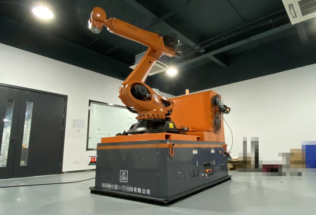 全向移載平臺上部搭載多軸機器人,實現(xiàn)對工件容器的夾取,提高生產(chǎn)效率。