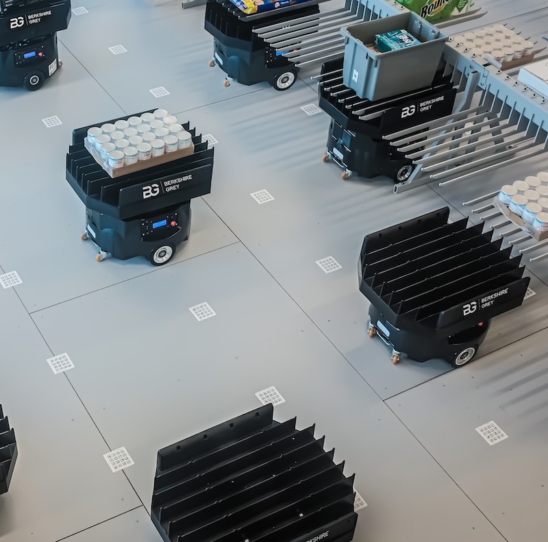 與固定傳送帶和早期移動(dòng)機(jī)器人不同,Berkshire Grey 的智能車隊(duì)利用人工智能的力量來(lái)協(xié)調(diào)數(shù)以萬(wàn)計(jì)的移動(dòng)機(jī)器人,為各種客戶和商店訂單挑選、組織和交付物品。