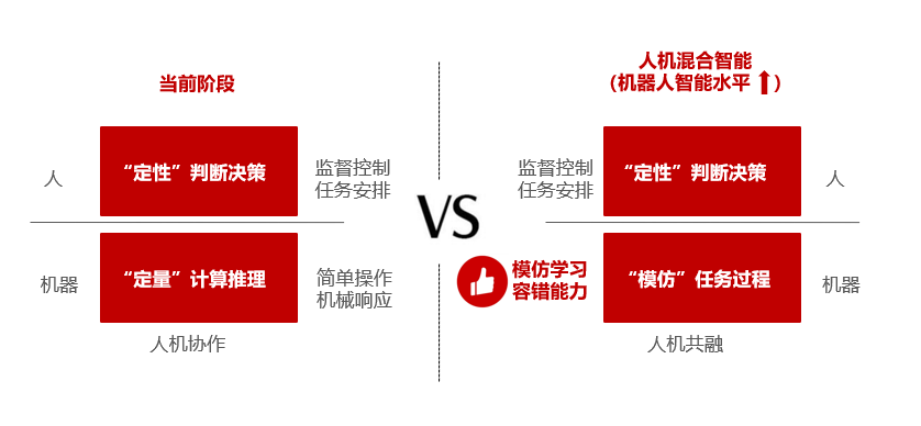 在5G網(wǎng)絡(luò)下,通過采用AGV+節(jié)卡協(xié)作機(jī)器人+產(chǎn)線終端接口,實(shí)現(xiàn)整個(gè)車間的生產(chǎn)原料自動(dòng)配送,形成安全可靠柔性的生產(chǎn)物流供應(yīng)系統(tǒng)。未來,“人”的角色依然是“定性”判斷的決策者,負(fù)責(zé)監(jiān)督控制和任務(wù)安排,機(jī)器人則從“定量”計(jì)算推理升級(jí)為“模仿”判斷決策,具備模仿學(xué)習(xí)和容錯(cuò)能力,打造更智能化城市。