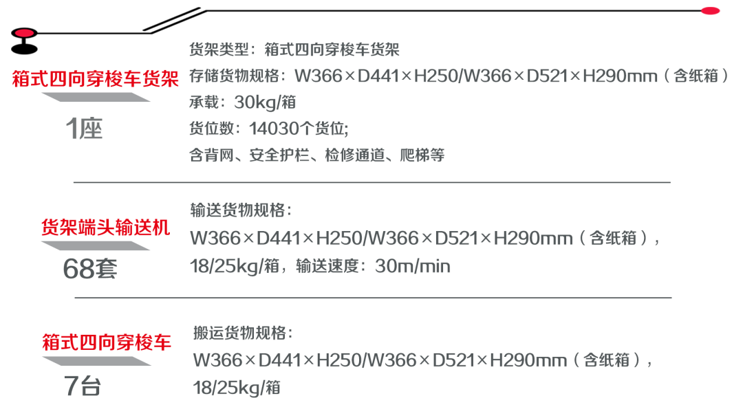 項目中的音飛儲存箱式四向穿梭車,具有遠(yuǎn)程遙控、自我檢測電量、提示報警、在線充電、遠(yuǎn)程更新下載程序、自主測量貨架、錄入?yún)?shù)、通訊數(shù)據(jù)傳輸、日志記錄等多項能力。單臺箱式四向穿梭車循環(huán)運(yùn)行效率為45箱/小時。7臺箱式四向穿梭車總體作業(yè)效率為40*7=280箱/小時(出+入),復(fù)合作業(yè)效率45*7=315箱/小時(出+入)。注:上述作業(yè)能力包括入庫、出庫作業(yè),在不倒庫、不換層情況下理論能夠達(dá)到的效率。