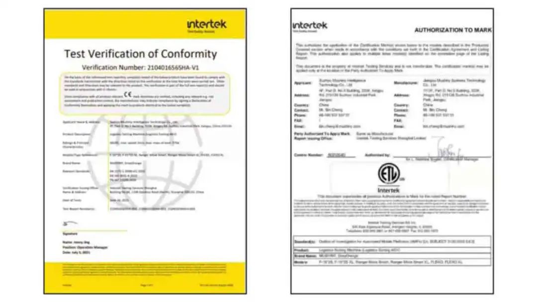 近日,牧星智能分揀機(jī)器人F-15*2通過全球權(quán)威認(rèn)證機(jī)構(gòu)Intertek全面嚴(yán)格的測(cè)試評(píng)估,成為業(yè)界第一個(gè)獲得基于EN3691-4的歐盟CE和基于UL3100的北美ETL功能安全雙認(rèn)證的分揀機(jī)器人。