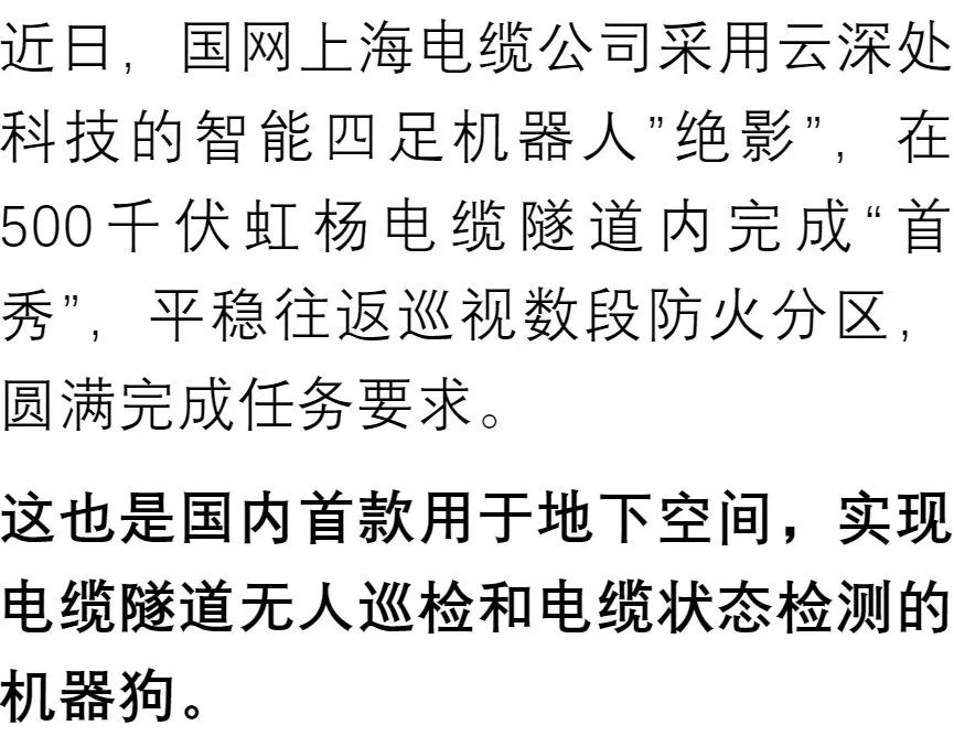 國內(nèi)首個!“絕影”機器狗完成500千伏電纜隧道代人巡檢