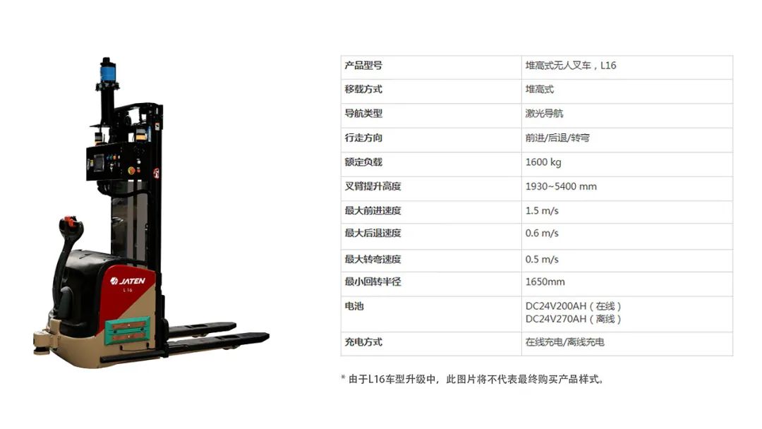 過(guò)去,工廠無(wú)人化處在小批量試驗(yàn)的階段,從環(huán)境良好、變化小、工作單一的場(chǎng)景開(kāi)始應(yīng)用,典型如倉(cāng)庫(kù),推動(dòng)了堆高式、前移式等室內(nèi)無(wú)人叉車(chē)在近幾年的蓬勃發(fā)展,直至目前,嘉騰最受歡迎的叉車(chē)代表,毋庸置疑是堆高車(chē)L16。