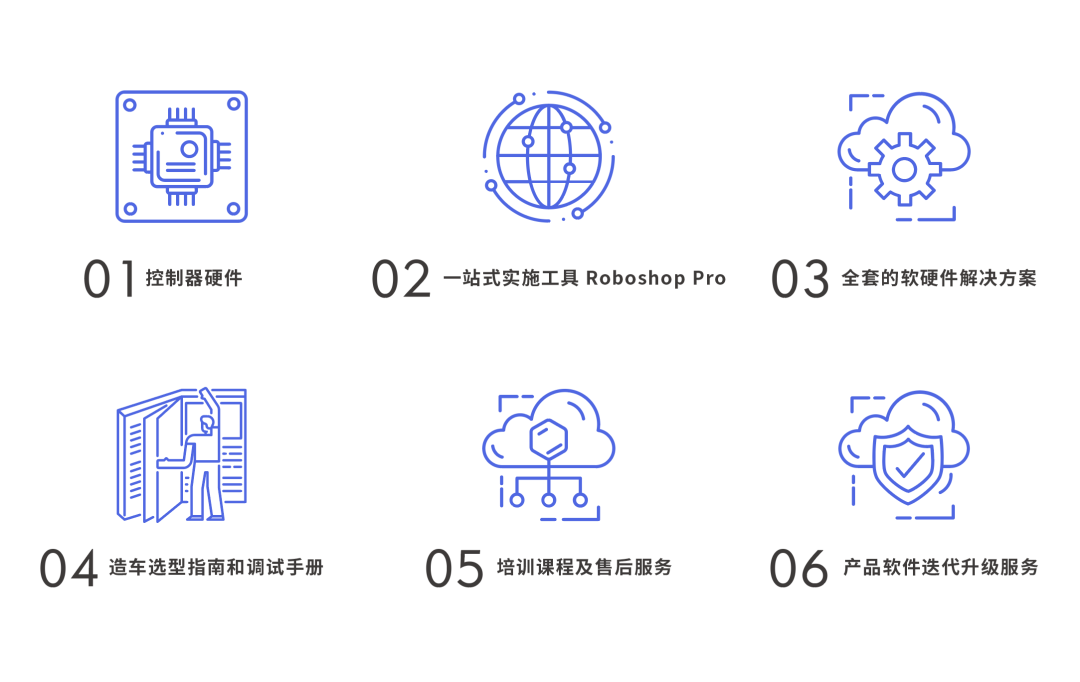 仙工智能“控制器解決方案”為客戶提供的不僅是一臺 SRC 控制器,而是涵蓋仙工智能龐大車型庫及先進技術支持的全套技術服務。方案包括: