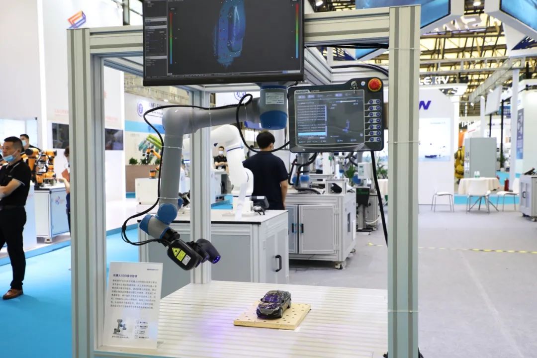 安裝姿態(tài)的靈活性也是協(xié)作機器人與柔性制造的一大切合點,倒裝的新松多可?GCR5協(xié)作機器人3D檢測系統(tǒng)可以應用于逆向工程及檢測領域。采用機器人末端搭載3D激光掃描儀,通過機器人的運動,使3D掃描儀穩(wěn)定且完整地掃描工件表面,并生成工件表面模型,便于進行工件的優(yōu)化改進等工作。同時,可搭配PolyWorks等軟件,實現(xiàn)工件的尺寸分析、比較等尺寸檢測工作,簡化人工操作流程,在大型工件尺寸檢測項目中提供更優(yōu)的解決方案。