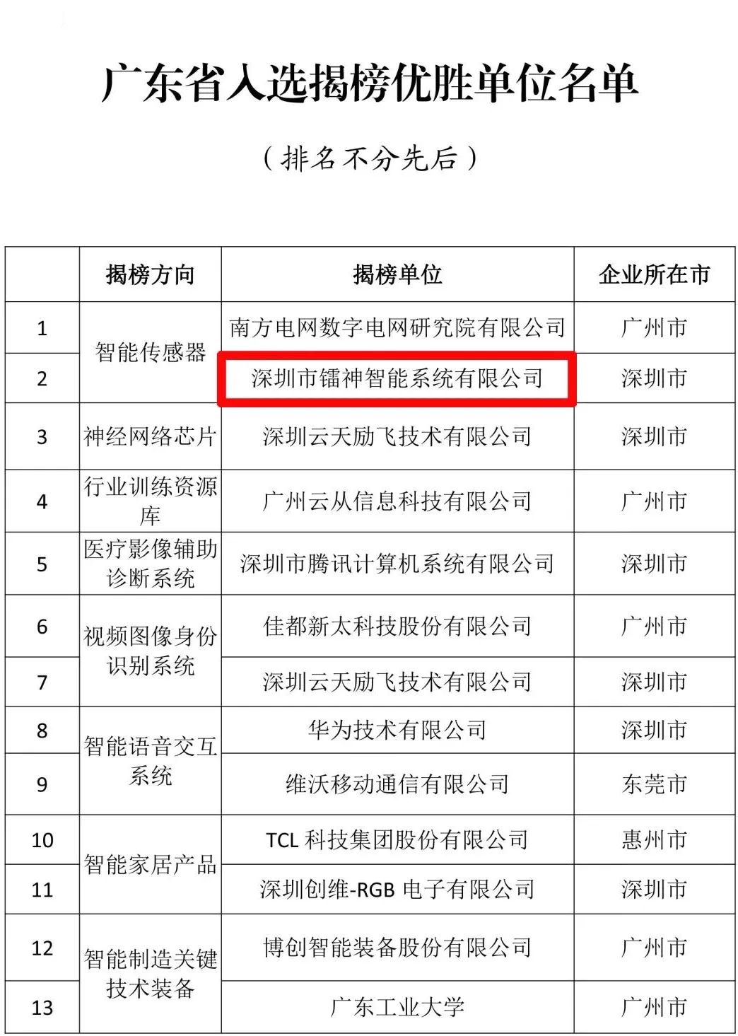 國家工業(yè)和信息化部辦公廳印發(fā)的第一期人工智能產(chǎn)業(yè)創(chuàng)新重點任務(wù)揭榜優(yōu)勝單位中,鐳神智能、華為、騰訊、南方電網(wǎng)等13家優(yōu)勝單位代表廣東人工智能產(chǎn)業(yè)尖端實力榮耀登榜!