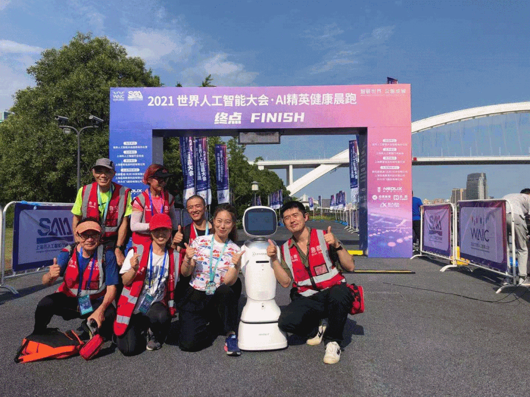 大會(huì)期間,備受歡迎的旺寶還受到上海市人工智能行業(yè)協(xié)會(huì)的邀請(qǐng),助力2021世界人工智能大會(huì)AI精英健康晨跑,在起點(diǎn)和終點(diǎn)處與AI精英跑友熱情互動(dòng),為他們加油打call。