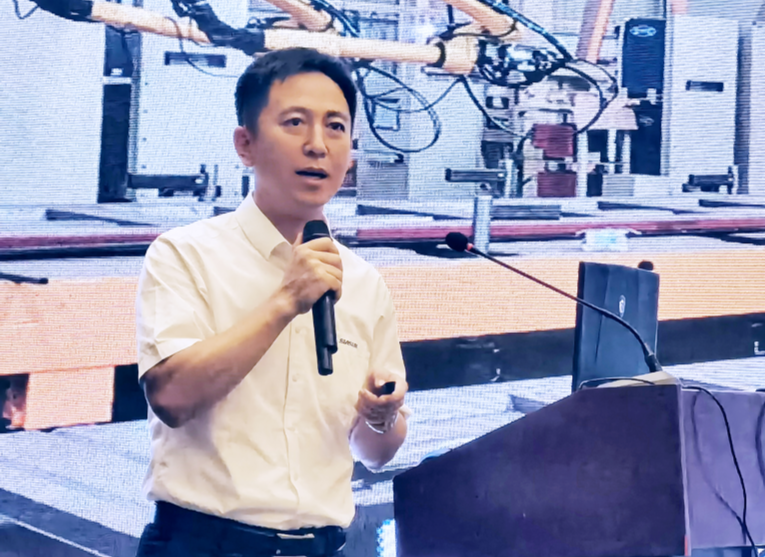 ▲新松智能裝備BG技術(shù)執(zhí)行總監(jiān)趙喜盛發(fā)表主旨演講