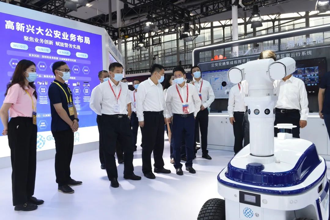 圖/領(lǐng)導(dǎo)參觀高新興展臺(tái),高新興董事長(zhǎng)劉雙廣陪同接待
