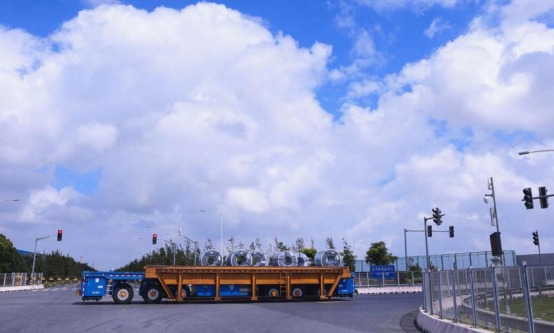 這群運輸特種兵,身長16米,沒有駕駛室,因為根本無需人來操作。在倉庫,它們適時前進后退、調(diào)整身姿,精準托舉鋼卷,集齊后再前往成品碼頭。第一次,黑夜不再是運輸壁壘,倉庫碼頭24小時不間斷運營成為可能。
