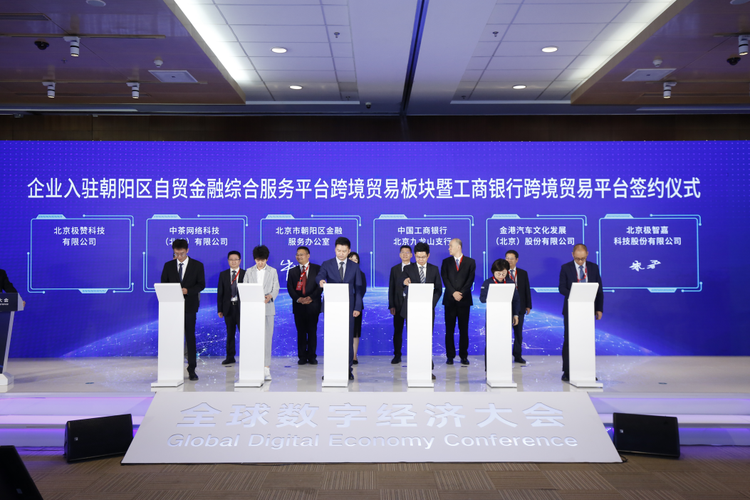 ▲極智嘉簽約入駐朝陽區(qū)自貿金融綜合服務平臺跨境貿易板塊暨工商銀行跨境貿易平臺