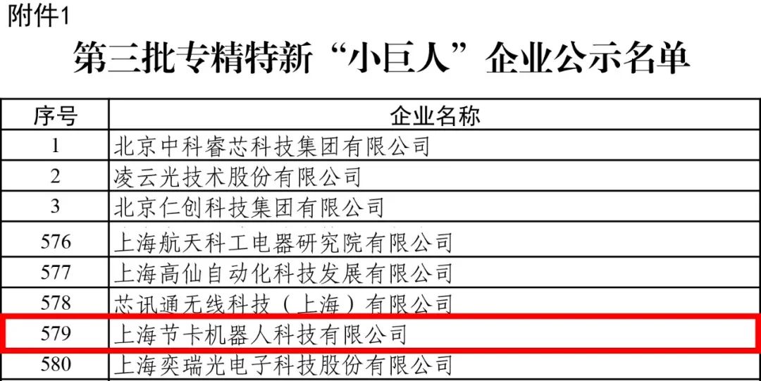 近日,國家工業(yè)和信息化部發(fā)布第三批專精特新“小巨人”企業(yè)名單,節(jié)卡機(jī)器人榮列其中,獲國家級專精特新“小巨人”企業(yè)榮譽(yù)稱號。