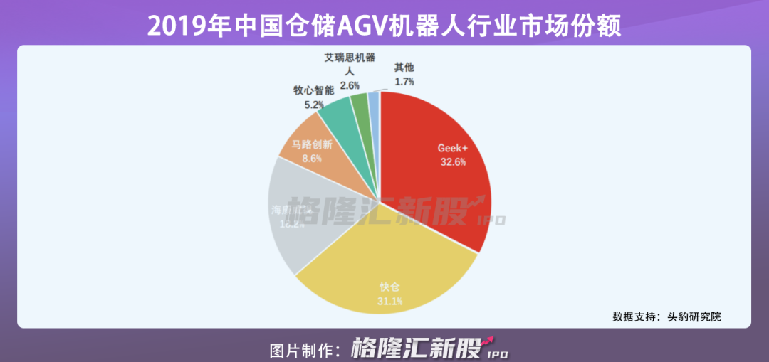 從AGV機器人行業(yè)競爭格局來看,極智嘉處在第一梯隊,占比市場份額32.6%,快倉和海康威視緊隨其后虎視眈眈,分別占比31.1%和18.2%。這三家企業(yè)通過成熟的技術和豐富的行業(yè)經(jīng)驗穩(wěn)居第一梯隊,合計占比市場份額超八成。