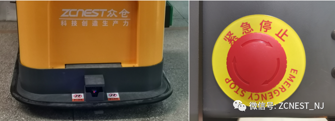目前叉車AGV的應(yīng)用以人機(jī)混場(chǎng)為多,為滿足需要人工緊急切斷AGV運(yùn)行動(dòng)作的場(chǎng)景,眾倉機(jī)器人特別設(shè)計(jì)360°急停按鈕,即在叉車前后面、兩側(cè)均設(shè)置急停按鈕,符合人體結(jié)構(gòu),即伸手即可拍停設(shè)備。急停開關(guān)只要被按下,則立即停車并發(fā)出警報(bào)。
