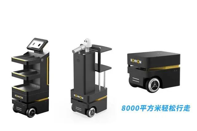 當(dāng)然靈活的配送機(jī)器人離不開一個(gè)完美移動(dòng)的機(jī)器人底盤,博眾機(jī)器人(簡(jiǎn)稱BOHHOM)研發(fā)的這款博時(shí)捷智能移動(dòng)底盤,小巧靈活,能夠平穩(wěn)穿過80cm的窄道,運(yùn)行穩(wěn)定。還預(yù)留有豐富的軟硬件開發(fā)接口,適用于室內(nèi)各類服務(wù)機(jī)器人的快速開發(fā)。