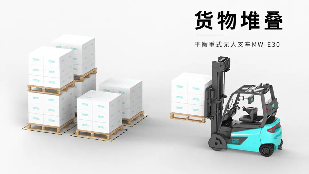 平衡重式無人叉車MW-SE08,整體更顯輕盈,本次展會將攜“托盤姿態(tài)識別”技術(shù)重磅演示,此技術(shù)繼去年CeMAT亞洲物流展發(fā)布后進行了優(yōu)化升級。在食品行業(yè)人機交互作業(yè)場景,地堆庫(并列齊排),人工叉車投放無人叉車取放貨場景,人工叉車很難一次放置成功,通常也不會采取放一托貨,挪動位置,需人為多次校正。