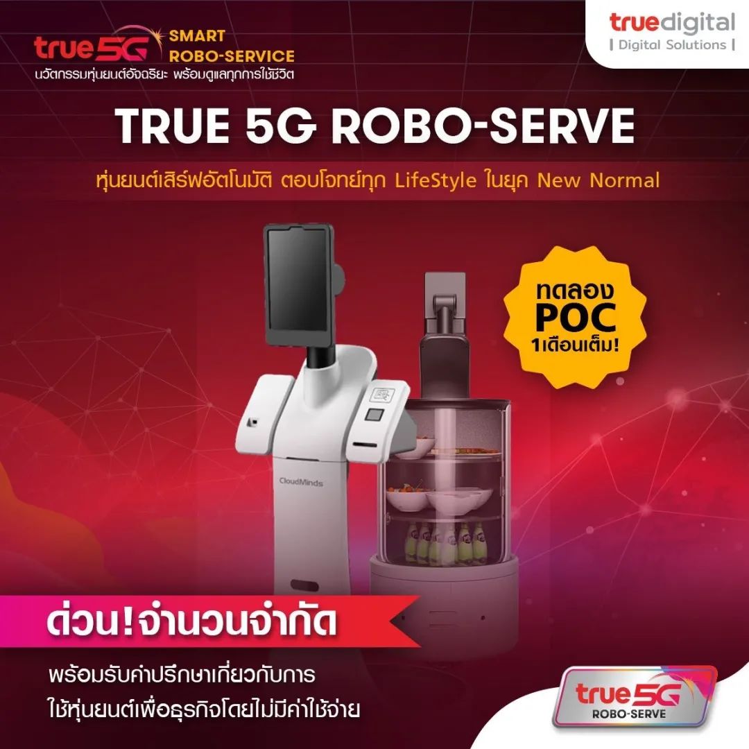 “當(dāng)服務(wù)是您業(yè)務(wù)的關(guān)鍵時,‘True 5G機(jī)器人服務(wù)’或Ginger Lite,作為一款智能服務(wù)機(jī)器人,在社交距離對安全至關(guān)重要的新常態(tài)時代,為每一種生活方式在餐廳提供了更高級、更現(xiàn)代的服務(wù)。True 5G機(jī)器人服務(wù)已經(jīng)準(zhǔn)備好建立信任,并在您的餐廳的每一步都留下難忘的印象。”