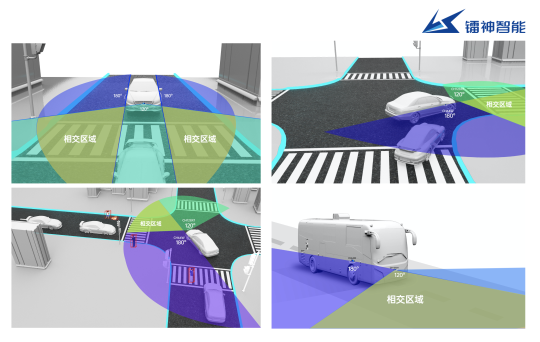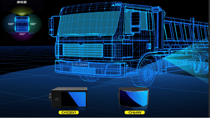 此方案采用鐳神智能車規(guī)級128線混合固態(tài)激光雷達CH128X1作為主雷達,探測距離可達200m(160m@10%),左右方及后方安裝3臺CH64W補盲激光雷達,兩者搭配均可滿足車規(guī)級設計標準,適用于智能駕駛環(huán)境感知與輔助決策,解決視覺盲區(qū)安全問題。