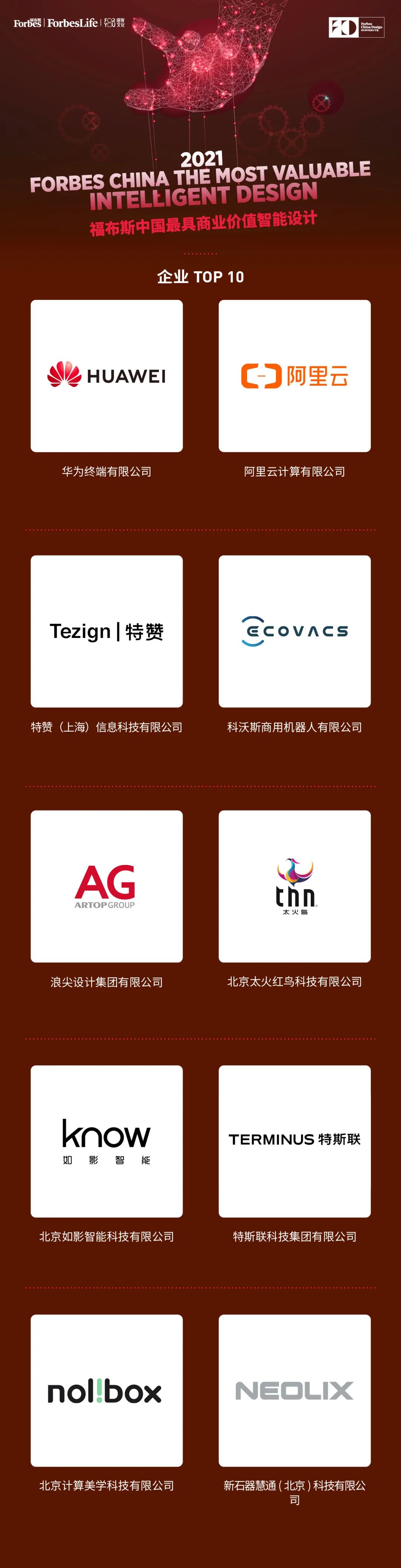 近日,福布斯中國(guó)發(fā)布2021中國(guó)最具商業(yè)價(jià)值智能設(shè)計(jì)(企業(yè)/設(shè)計(jì)師)獎(jiǎng)。科沃斯商用榮獲“2021福布斯中國(guó)最具商業(yè)價(jià)值智能設(shè)計(jì)企業(yè)TOP 10”,與華為終端、阿里云計(jì)算等企業(yè)同榜。