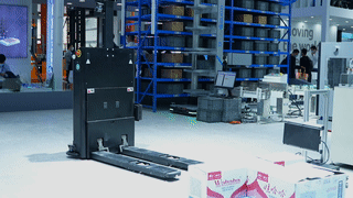 在國(guó)自展臺(tái)我們還看到一臺(tái)叉式機(jī)器人在展示平庫(kù)堆疊功能,機(jī)器人將兩疊壘放著較大體積的礦泉水托盤(pán)精準(zhǔn)地堆疊,給到場(chǎng)觀眾帶去較為直觀的感受。