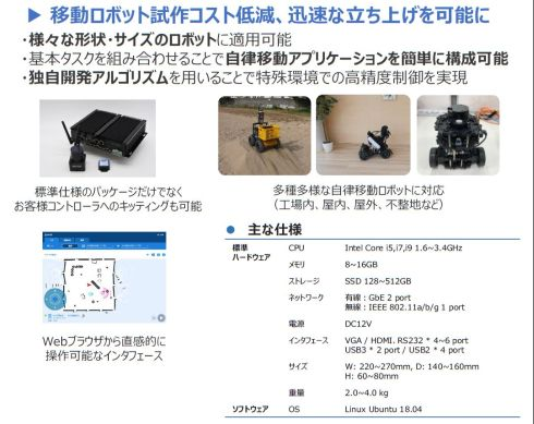 用于自主移動機器人的控制器包的標準包的價格約為300萬日元,包括配備英特爾CPU和 LiDAR單元的嵌入式計算機。它已被松下和杉野機械等五家公司采用。高橋先生說:“這是一個用于演示實驗和試開發(fā)的包,它是一種定位為通向批量生產(chǎn)合同開發(fā)的入口的產(chǎn)品?!?/p>