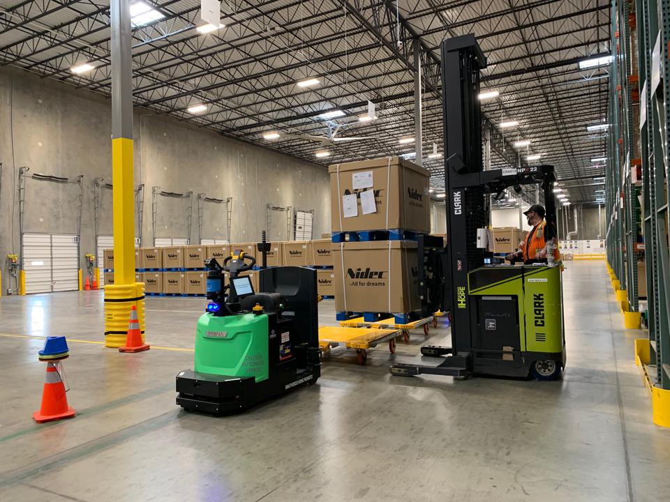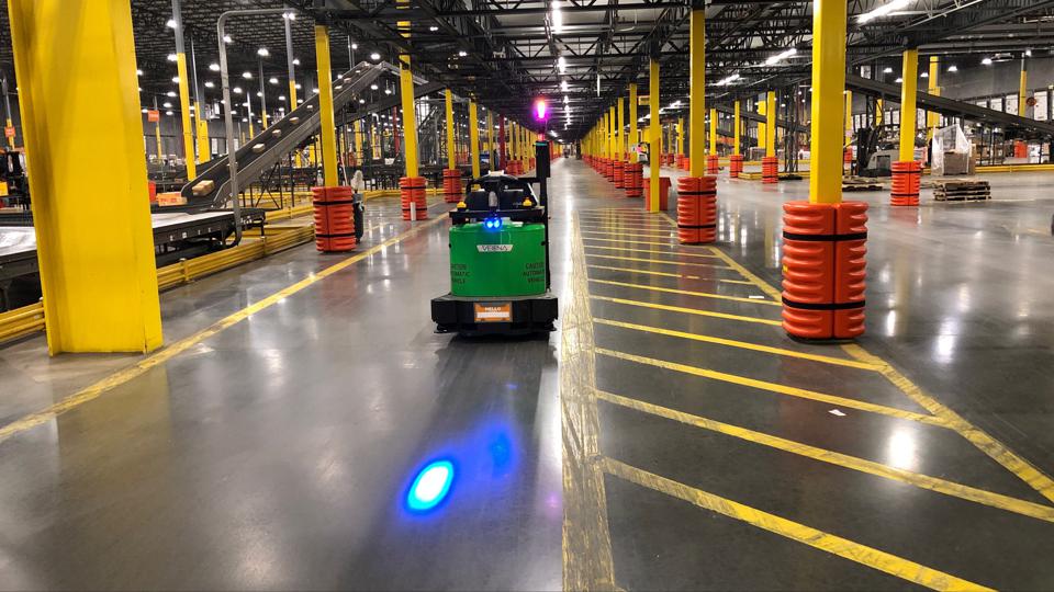 Vecna 自主運(yùn)行托盤(pán)叉車(chē)正在運(yùn)行中