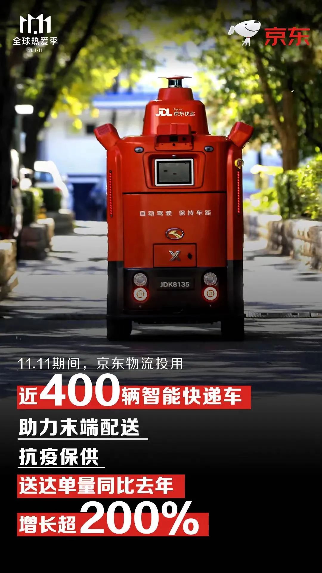 值得一提的是,今年京東11.11,京東物流的送貨范圍已經(jīng)覆蓋了全國(guó)幾乎所有的城鎮(zhèn)和鄉(xiāng)村,并在全國(guó)93%區(qū)縣84%鄉(xiāng)鎮(zhèn)實(shí)現(xiàn)了當(dāng)日達(dá)和次日達(dá),26萬(wàn)一線(xiàn)員工全情投入,配送能力甚至高于今年618。即便在疫情影響地區(qū),京東物流也實(shí)現(xiàn)了提前部署,分布在全國(guó)超25個(gè)城市的近400輛智能快遞車(chē)高效運(yùn)行,送達(dá)單量同比去年增長(zhǎng)超200%,讓消費(fèi)者無(wú)論身處何地,都能參與到購(gòu)物節(jié)的狂歡中來(lái)。