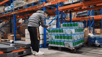 大促時AMR機(jī)器人可裝載更多貨物并穩(wěn)定運行,員工無需推拉重物,減輕工作強(qiáng)度,提升工作效率。這點在該龍頭電商的水飲和米面糧油品類倉庫體現(xiàn)得尤為明顯。人工用地牛拖貨平均每天負(fù)重500KG,大促時更會遠(yuǎn)超人的承受極限,而AMR機(jī)器人則不受影響,從拿貨到送至工作臺依然可以分鐘級完成。