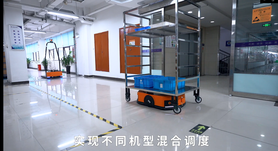 BITO技術(shù)專家深入客戶現(xiàn)場,調(diào)研生產(chǎn)狀況,根據(jù)各區(qū)域位置、動線、流程、工位等情況,幫客戶部署了一套智能物流整體解決方案,包括3臺AMR+2臺地牛式AGF智能移動機(jī)器人,一套BFMS多機(jī)調(diào)度系統(tǒng),實現(xiàn)了不同車型的混合調(diào)度,跨樓層高效協(xié)同作業(yè)。