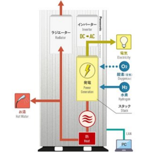 2009 年,松下推出了世界上第一個(gè)家用燃料電池?zé)犭娐?lián)產(chǎn)系統(tǒng) ENE-FARM*3,該系統(tǒng)使用從天然氣中提取的氫氣來發(fā)電。10 多年來,該公司通過提高其電氣效率和運(yùn)行時(shí)間以及使其更緊湊來發(fā)展 ENE-FARM。同時(shí),為迎接氫能社會(huì)的到來,松下也同步進(jìn)行純氫燃料電池發(fā)電機(jī)的研發(fā),從外界直接供應(yīng)氫氣作為燃料發(fā)電。該公司于 2012 年在日本中部山梨縣甲府市推廣可再生能源設(shè)施 Yume Solar Kan Yamanashi 開始,在日本各地對(duì)此類發(fā)電機(jī)進(jìn)行了現(xiàn)場(chǎng)測(cè)試。