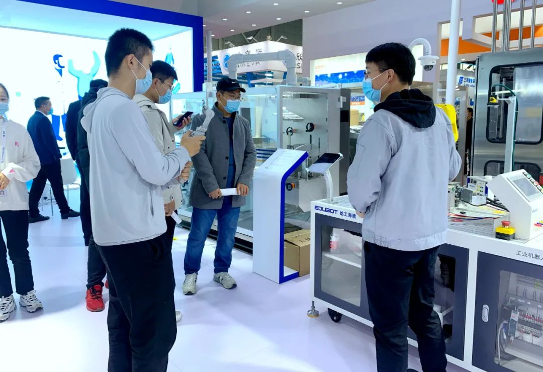 在機器人專業(yè)人才缺口逐年擴大的背景下,工業(yè)機器人技能考核實訓(xùn)臺吸引了眾多參觀者的目光,該款實訓(xùn)臺采用了模塊化的設(shè)計,可適用主流品牌的機器人,滿足機器人的入門操作、系統(tǒng)集成、編程應(yīng)用和虛擬仿真等教學(xué)需求。