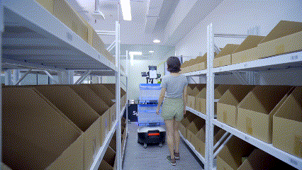 AMR前往商品儲位,提示附近作業(yè)員揀貨