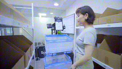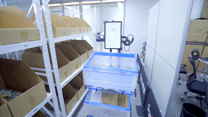 AMR自主移動至任務(wù)位置,提示作業(yè)員揀貨