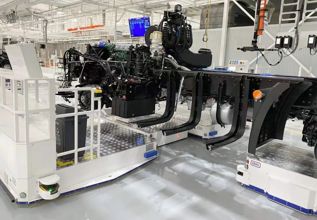 J7智能工廠聚焦國(guó)內(nèi)整車制造痛點(diǎn)及攻關(guān)難題,采用國(guó)際領(lǐng)先的制造裝備,融合解放先進(jìn)工藝技術(shù)和精益生產(chǎn)思想,致力實(shí)現(xiàn)智能化、柔性化生產(chǎn)。新松公司在移動(dòng)機(jī)器人領(lǐng)域擁有豐富的項(xiàng)目經(jīng)驗(yàn)與雄厚的技術(shù)儲(chǔ)備,這與一汽解放本輪技術(shù)升級(jí)的需求高度契合,雙方攜手開(kāi)展項(xiàng)目合作,實(shí)現(xiàn)了移動(dòng)機(jī)器人技術(shù)對(duì)重卡總裝線各環(huán)節(jié)工藝的全流程覆蓋。