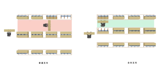 物料長,體積大,使用普通叉車,占用通道距離大;
