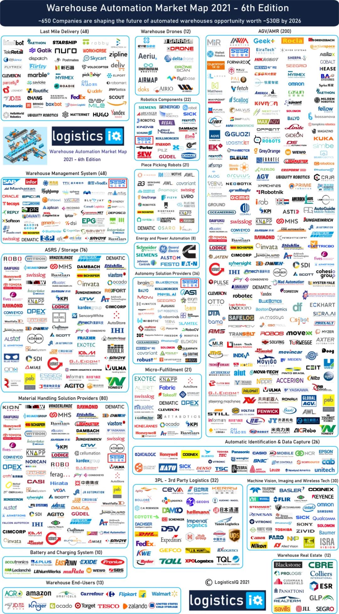 仙工智能 SEERLogisticsIQ? 市場圖譜9 個(gè)版塊具體的 9 個(gè)版塊分別是制造與物流(Manufacturing &Logistics)、控制器及組件(Motion Control & Components)、移動(dòng)機(jī)器人(AGV/AMR)、導(dǎo)航及機(jī)器人軟件(Navigation and Robotics Software)、倉儲(chǔ)物流管理系統(tǒng)(Warehouse Management System)、自主解決方案提供商(Autonomy Solution Providers)、物料搬運(yùn)解決方案提供商(Material Handing Solution Providers)、機(jī)器人組件(Robotics Components)、醫(yī)療支持(Hospital Support )。