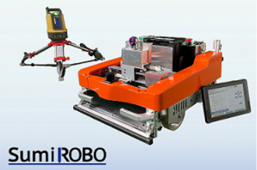 SumiROBO自動劃線機(jī)器人系統(tǒng)(左后方的測量機(jī)是Topcon的產(chǎn)品) 來源:日立渠道解決方案有限公司。