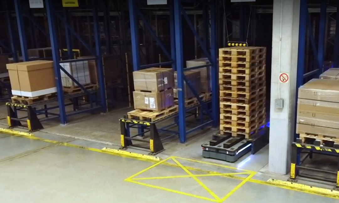我們客戶的這個部署任務要求運輸大量的空木質托盤,因為這些托盤要在自動化倉庫中使用。這個流程非常適合自動化運輸。配送中心的部署工作包括將負責運輸空托盤的自主移動機器人集成到內部貨物運輸流程中。在測試過程中,該機器人行駛了超過60公里,成功完成了180次任務,運輸了超過1,500個空托盤。得益于此,我們能夠優(yōu)化內部運輸,同時充分確保員工的安全,保證這筆投資的收益性。