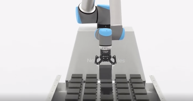 搭配托盤模塊的MiR AMR可將物料運(yùn)輸至指定點(diǎn)位,然后與復(fù)合機(jī)器人無縫銜接,進(jìn)而完成精細(xì)物料抓取動作,增強(qiáng)工業(yè)領(lǐng)域自動化的場景。