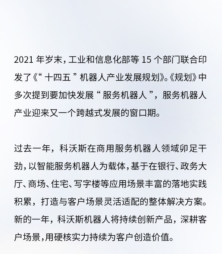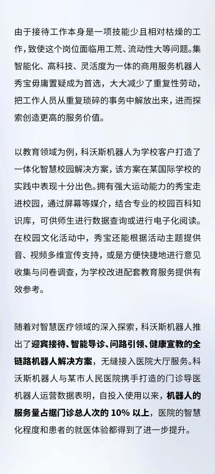 科沃斯商用機(jī)器人是服務(wù)機(jī)器人領(lǐng)軍品牌科沃斯機(jī)器人股份有限公司旗下全資子公司,為行業(yè)應(yīng)用場(chǎng)景提供智能機(jī)器人解決方案,業(yè)務(wù)覆蓋金融、政務(wù)、零售等多個(gè)領(lǐng)域。