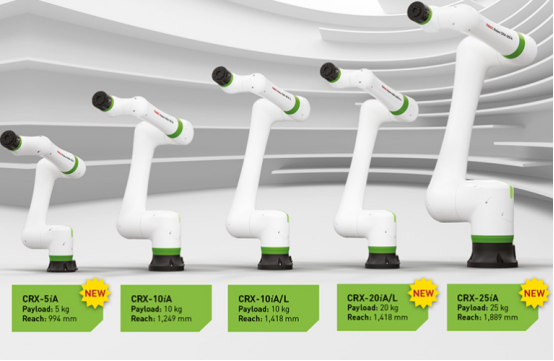 FANUC推出了CRX-5iA、CRX-20iA/L和CRX-25iA協(xié)作機(jī)器人,這是CRX系列的最新成員,該系列已經(jīng)包括CRX-10iA和CRX-10iA/L協(xié)作機(jī)器人。