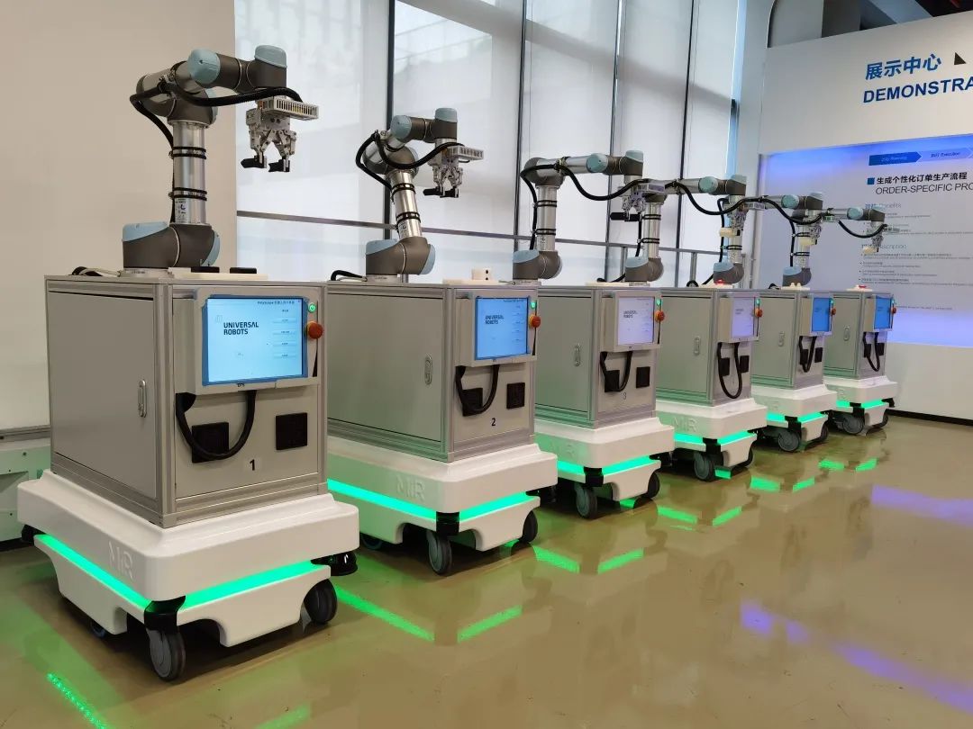 中德研究院展示與培訓(xùn)中心負(fù)責(zé)人劉軒表示:“展示中心和培訓(xùn)中心承載著對外展示智能制造方案及人員技術(shù)培訓(xùn)的功能,由于預(yù)計接待訪客量大,且工作環(huán)境需要人與機(jī)器人在同一場景協(xié)同工作,因此高安全性成為其內(nèi)部物流運(yùn)輸優(yōu)化方案中不可或缺的關(guān)鍵要素。MiR自主移動機(jī)器人搭配UR協(xié)作機(jī)器臂的復(fù)合型協(xié)作機(jī)器人的高安全性為創(chuàng)造安全的展示和培訓(xùn)流程提供了有力保障?!?/p>