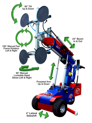 MAVLift?越野玻璃機(jī)械人是德國KS Schulten 公司設(shè)計(jì)和生產(chǎn)的專門的通過精確控制的、鉸接式真空吸盤來移動(dòng)和搬運(yùn)玻璃和其他材料的遙控叉車。該產(chǎn)品為戶外搬運(yùn)玻璃和崎嶇工況而設(shè)計(jì),提供堅(jiān)固的大輪胎和強(qiáng)大的前輪驅(qū)動(dòng)系統(tǒng)。以精密多功能無線遙控器為標(biāo)準(zhǔn),并提供能夠?qū)⒉AгO(shè)置在 16 英尺以上的模型,玻璃工比以往任何時(shí)候都更安全、更快地完成工作。