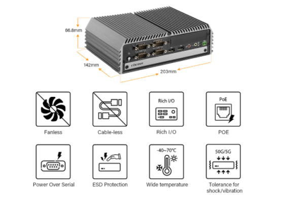特定的應用功能包括車載功能,POE 功能,RAID 備份和恢復,以及多網(wǎng)口網(wǎng)絡監(jiān)控。通過這些功能的設計讓客戶的應用更容易實現(xiàn)并且更符合經(jīng)濟效益,選擇合適的無風扇嵌入式,不需要因為功能或性能而擔憂。在這里,可滿足您的全部需求!
