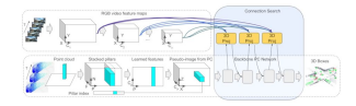 然而,4D-Net 系統(tǒng)真正聰明的部分在于其連接架構(gòu)搜索的形式——它能夠從融合數(shù)據(jù)中提取最多、最合適的信息。一次性輕量級(jí)可微架構(gòu)搜索可在 3D 和時(shí)間中找到相關(guān)信息,并將其連接到兩種不同的傳感模式 - 并學(xué)習(xí)兩個(gè)傳感器在不同抽象級(jí)別的特征表示組合。