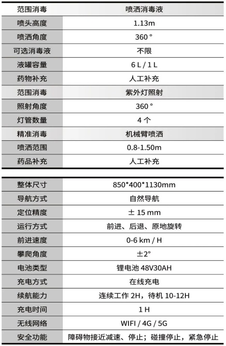 ? 大范圍消毒:守護(hù)者配備3個(gè)噴頭在機(jī)身頂部,以及4個(gè)紫外線消殺燈,同時(shí)滿足無(wú)人空間的大范圍消毒需求;