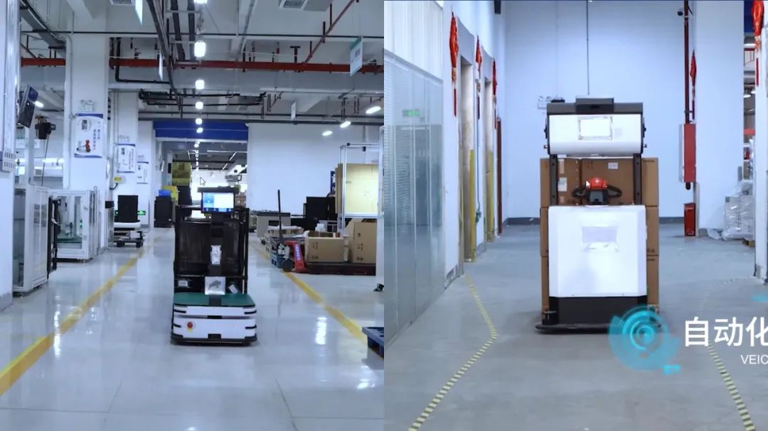 在生產(chǎn)自動化變革進(jìn)程中,藍(lán)芯科技為該企業(yè)部署了智慧物流方案,其中包括機(jī)器人調(diào)度系統(tǒng)、智能搬運(yùn)機(jī)器人和無人叉車。