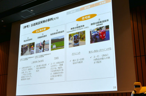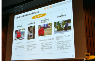 之后,首先是先進(jìn)地方政府介紹了示范案例。首先,來自筑波市政策創(chuàng)新部總經(jīng)理森佑介先生。在筑波市,已經(jīng)展示了 Segway 等登機型移動支持機器人,并且正在進(jìn)行 Robocon“筑波挑戰(zhàn)賽”,但自動交付本身仍在未來。到目前為止,本田和樂天項目正在筑波大學(xué)校園內(nèi)進(jìn)行,時間為 2021 年 7 月 19 日(星期一)至 8 月 31 日(星期二)。預(yù)計未來還將用于其他領(lǐng)域。