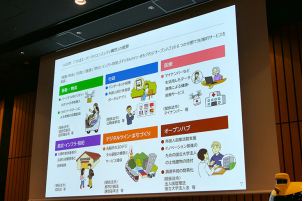 作為結(jié)構(gòu)改革特區(qū)的一部分,筑波市于 2011 年被認(rèn)定為“移動機器人實驗特區(qū)”。因此,Segway 將能夠在公共道路上行駛,到目前為止,它已經(jīng)行駛了 30,000 公里,沒有發(fā)生任何事故。此外,電動輪椅的自動駕駛也在進(jìn)行中。Doog的后續(xù)機器人“Souther”在與國家警察廳協(xié)商后也被視為行人,可以在公共道路上奔跑。我們正在努力推廣“筑波超級科學(xué)城概念”。他說,他希望通過促進(jìn)流動性、物流、政府、醫(yī)療保健、防災(zāi)基礎(chǔ)設(shè)施、研發(fā)等的開放樞紐計劃來提供跨領(lǐng)域服務(wù)。